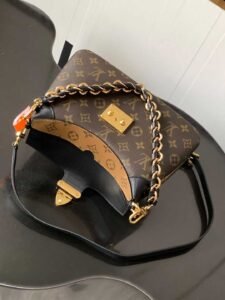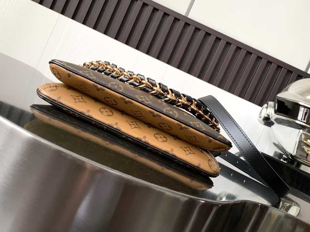 TWINNY handbag Inspired by the brand’s archival classic designs, this handbag combines Monogram and Monogram Reverse canvas with leather trims for a relaxed yet refined aesthetic. The S-lock clasp and woven chain-link handle enhance the intricate details, while the adjustable strap allows versatile crossbody or shoulder carry options.