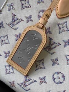 The OnTheGo MM handbag is from the Nautical collection, featuring intricate color gradients with colorful yarns depicting LV letters and Monogram flowers using jacquard technology.