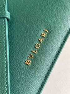 Comes with a leather shoulder strap, a customizable makeup mirror on one side, and the Bulgari metal logo on the back
