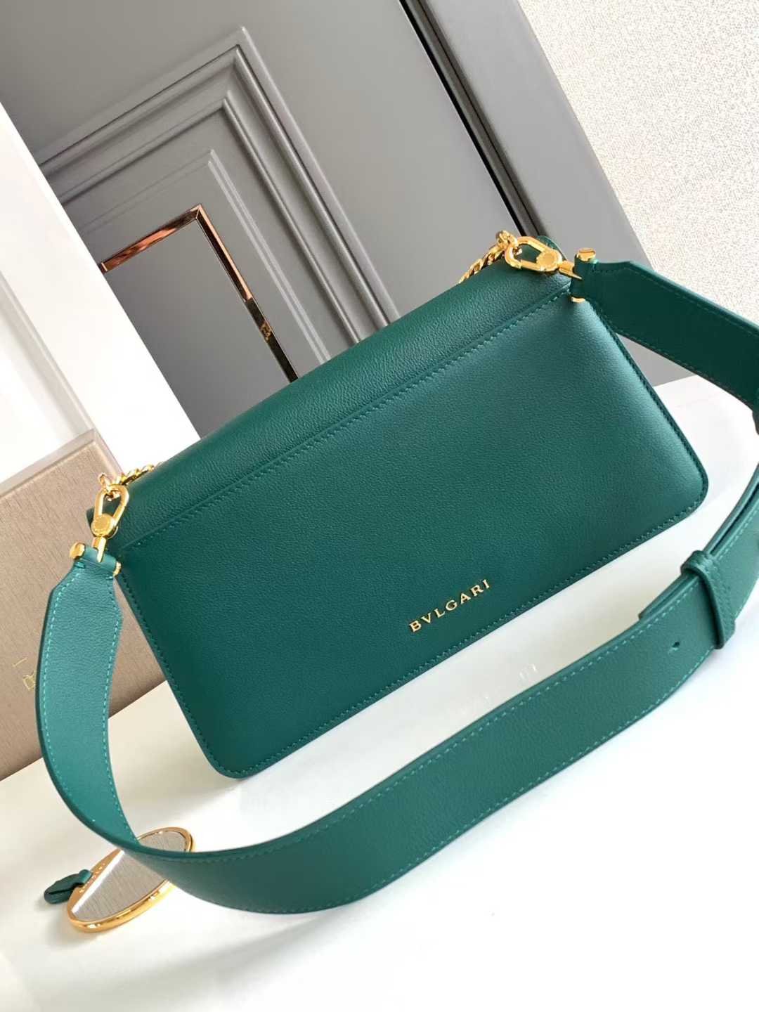 Made of forest jade green grain patterned calf leather material