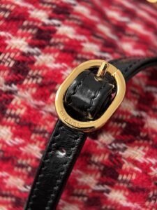24N Red Grid Backpack – Gold Buckle This vibrant little backpack looks super cute and makes your skin appear brighter.