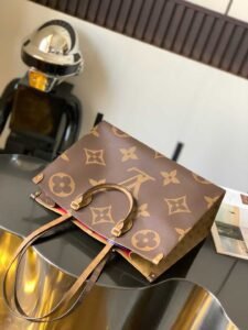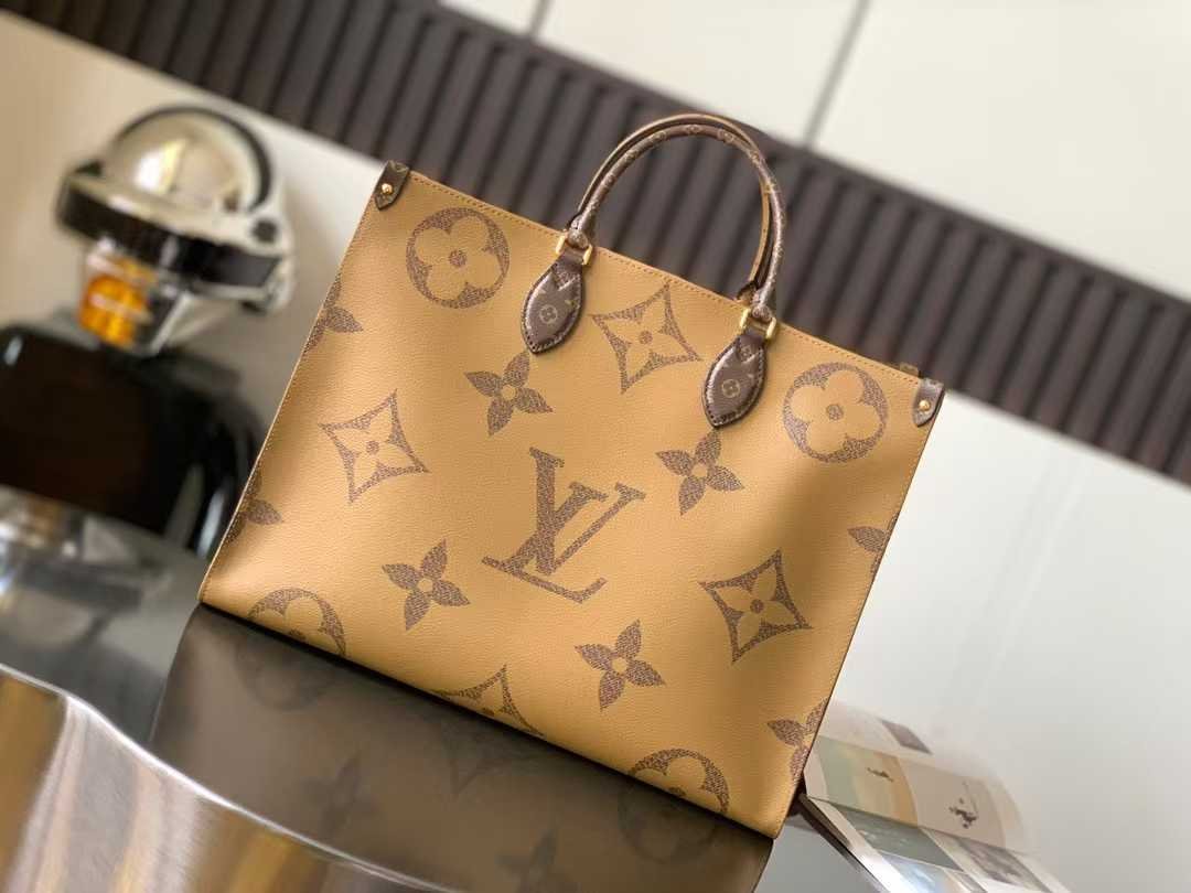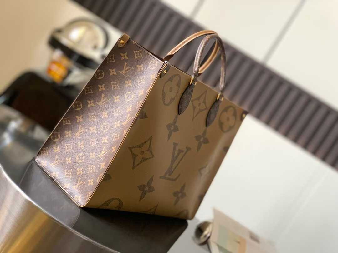 Handbag for work, shopping or weekend outings, grab the Onthego handbag and set off instantly. The oversized Monogram print contrasts with the mini Monogram trim, paired with a spacious interior design. The brown large-letter screen-printed mommy bag/shopping bag exudes an avant-garde and modern feel effortlessly.
