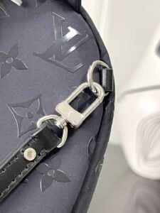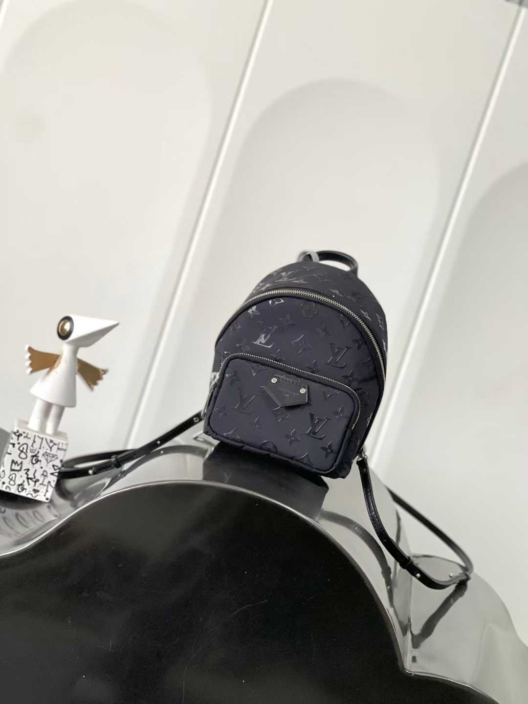 Palm Springs mini backpack from the LV Snow collection infuses urban and mountain styles with trendy flair. The Monogram nylon offers a soft texture and abrasion resistance, while screen printing crafts the iconic pattern with a delicate matte finish. The front zippered pocket provides easy access to essentials.