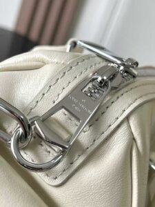 This Speedy Cargo bag from the LV Vibe collection reinvents the classic 1930s design with avant-garde strokes. The glossy lambskin body is adorned with a Monogram address tag, paying homage to the brand’s long-standing trunk-making heritage. The spacious interior easily accommodates daily essentials, while the detachable leather shoulder strap offers versatile carrying options.