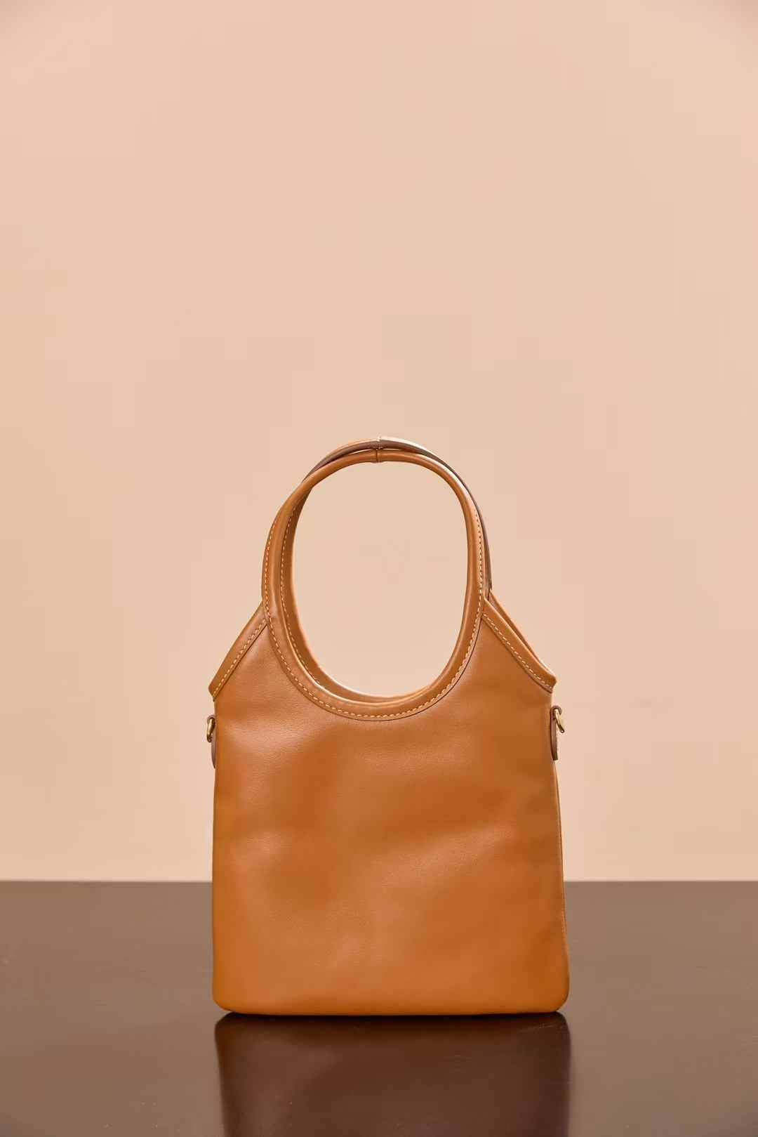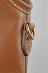 Genuine Italian premium calfskin All-steel hardware top version Matte soft leather with natural grain texture Unique cognac color – warm, understated yet luxurious Vintage vibe at first sight Comes with detachable long chain strap Pale gold all-steel hardware Can be carried as handbag, shoulder bag or crossbody