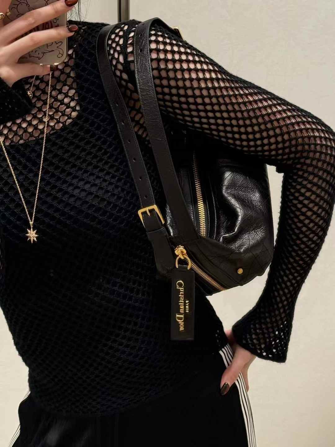The latest Wang fried style is made of imported original black pleated calf leather+gold letter shoulder strap buckle
