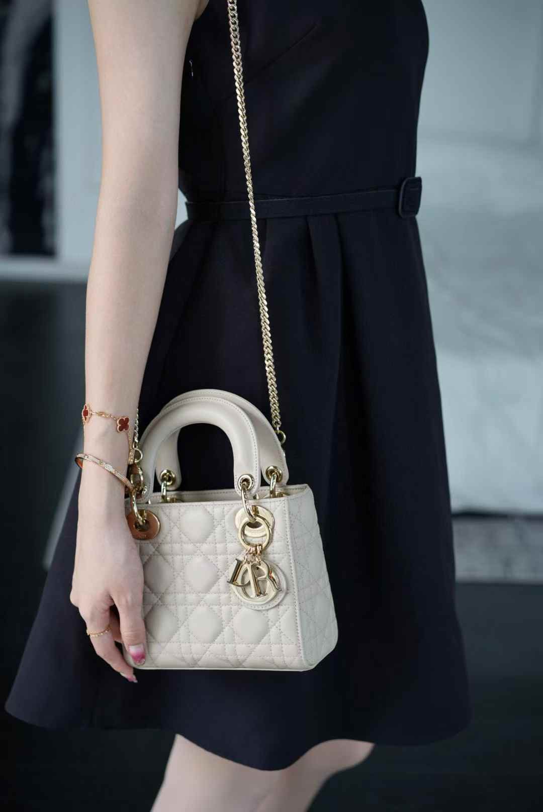 Mini Lady Dior Bag Classic Cannage three-compartment gold hardware GR original lambskin in blush beige The delicate lambskin texture is soft and supple, combined with the iconic Cannage design. Paired with full stainless steel metal hardware. The blush beige color is truly gentle, a versatile shade that complements outfits all year round. It looks exceptionally stunning when worn! A perfect blend of luxury and elegance…