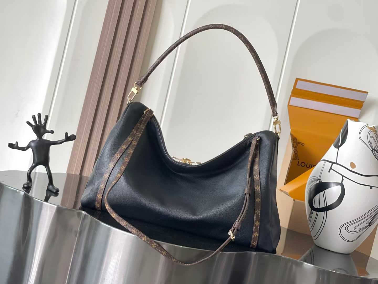 The Express Travel large tote bag features a soft cowhide leather construction with Monogram fabric lining, showcasing Nicolas Ghesquière’s modern interpretation of the Keepall bag. Its spacious interior combined with versatile carrying options make it an ideal choice for urban travelers.