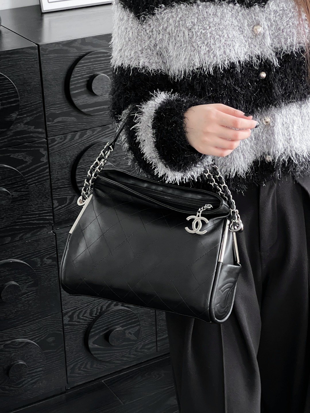 CHANEL MASTER Silver Rod Hobo Little Black 30*21*11cm