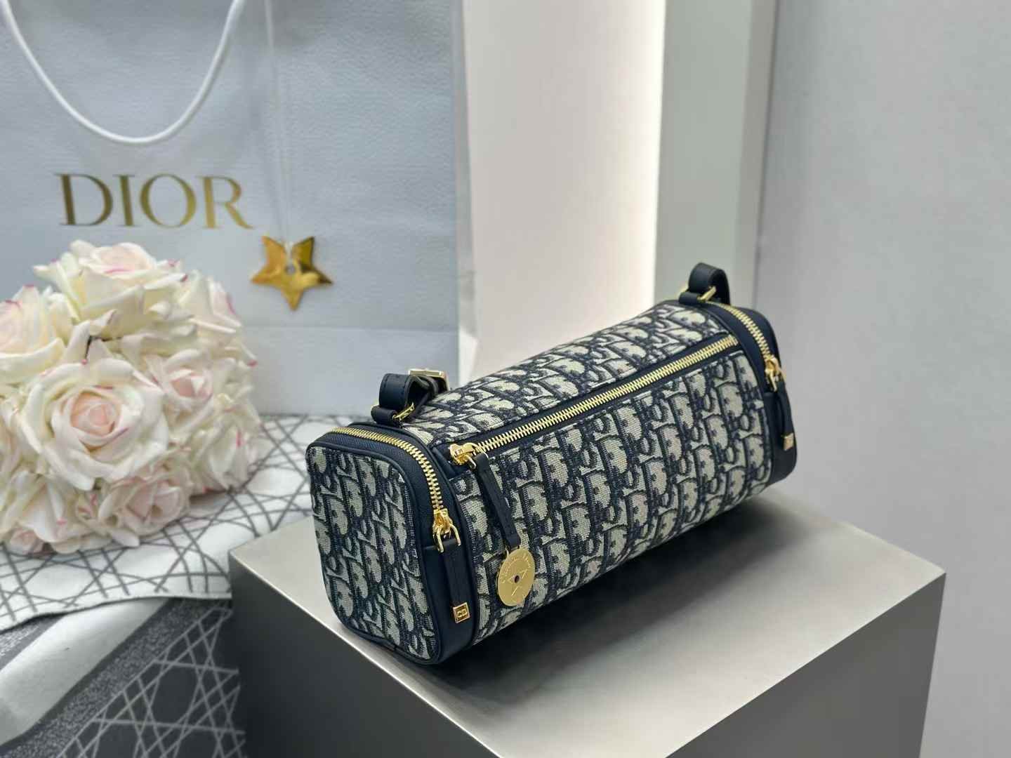 Using original factory calfskin with smooth leather Adorable pencil holder shape, retro yet stylish at the same time, instantly captivating Practical and unique design from the Dior Star line, paired with zippered side pockets for added elegance. Features a zippered opening, vintage gold circular plaque with Christian Dior Paris logo and Dior’s iconic star motif, exuding sophistication. Adjustable and detachable leather strap for shoulder or crossbody wear. Lightweight and stunningly beautiful—love at first sight~ Ample daily capacity, very spacious️ Perfectly sized for everyday essentials, everything just right.