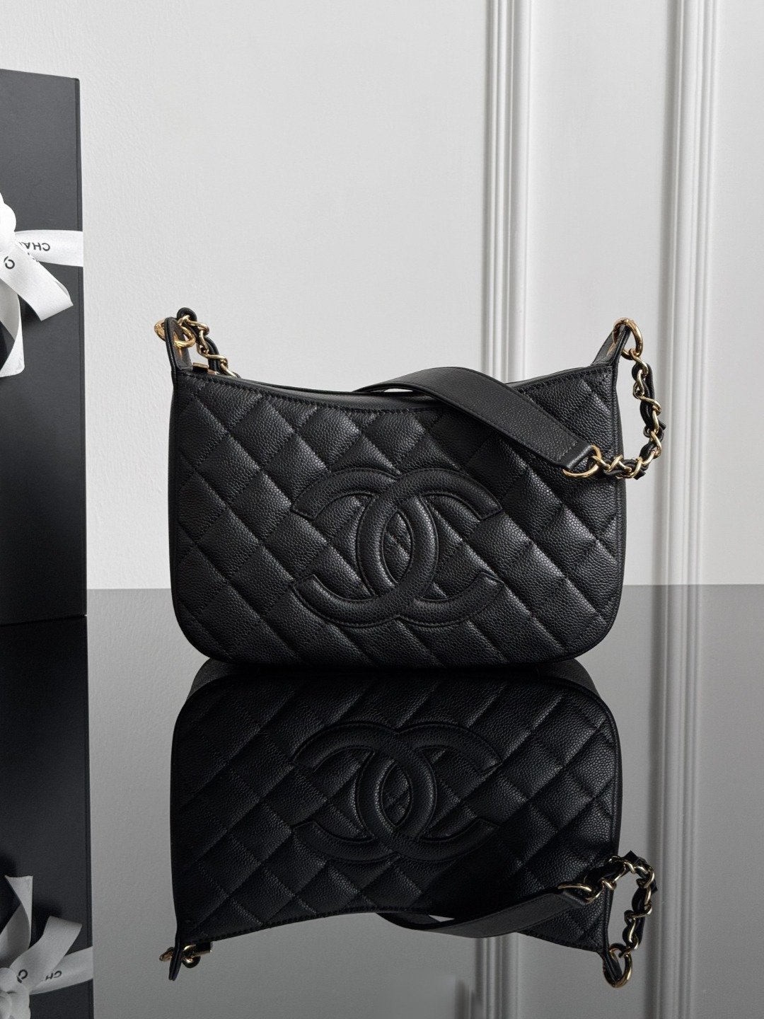 The black and gold color scheme will never go out of style, elegant and casual, with a high cost performance ratio. The black large double c logo is super absorbent, simple and elegant, and the underarm capacity is also great. The shoulder straps also fit well