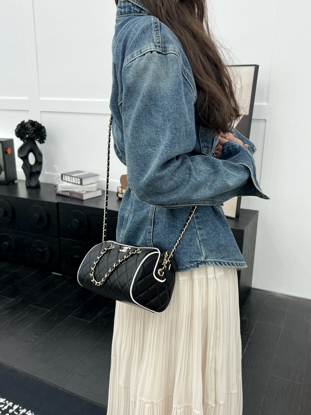 The small and exquisite bowling ball bag is so delicate that it can’t breathe. The round and bulging shape of the bag is super cute and can be carried by hand or crossbody. The long chain is detachable and can be used directly as a handbag. It’s cute and practical