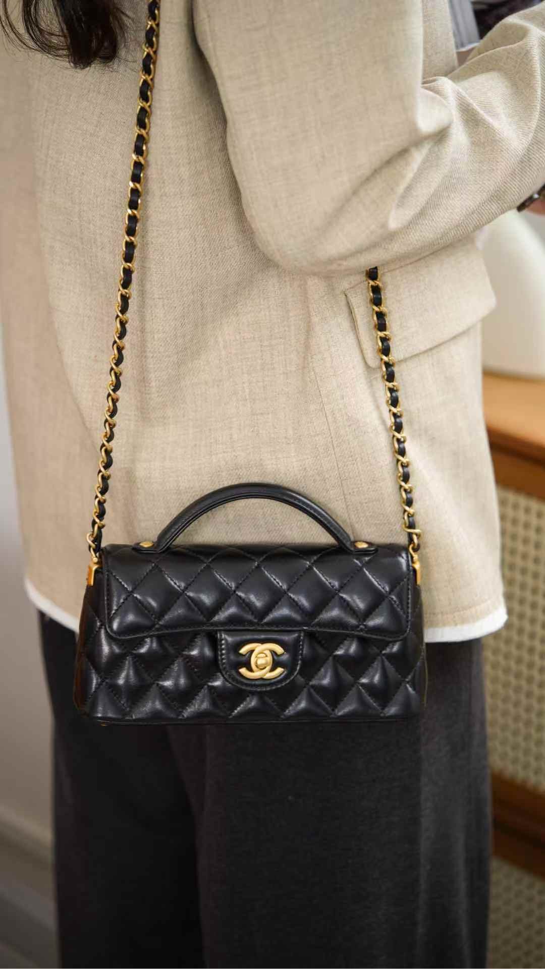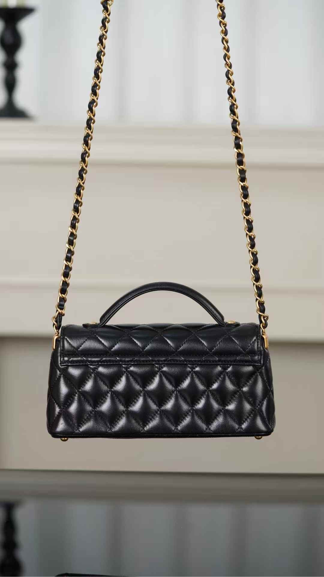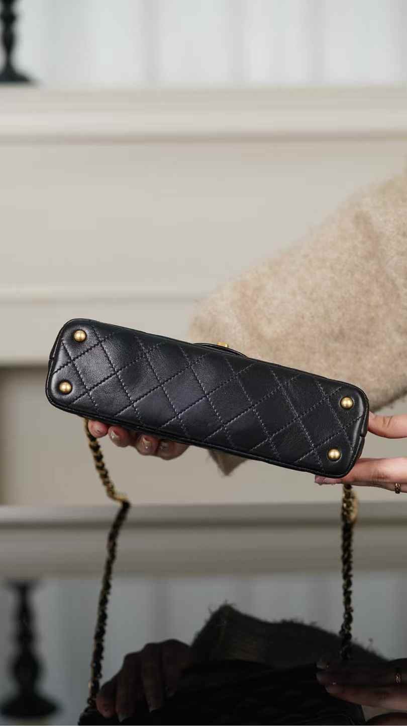 Chanel 25P new horizontal handle flap bag in black and gold 22*6.5*11cm