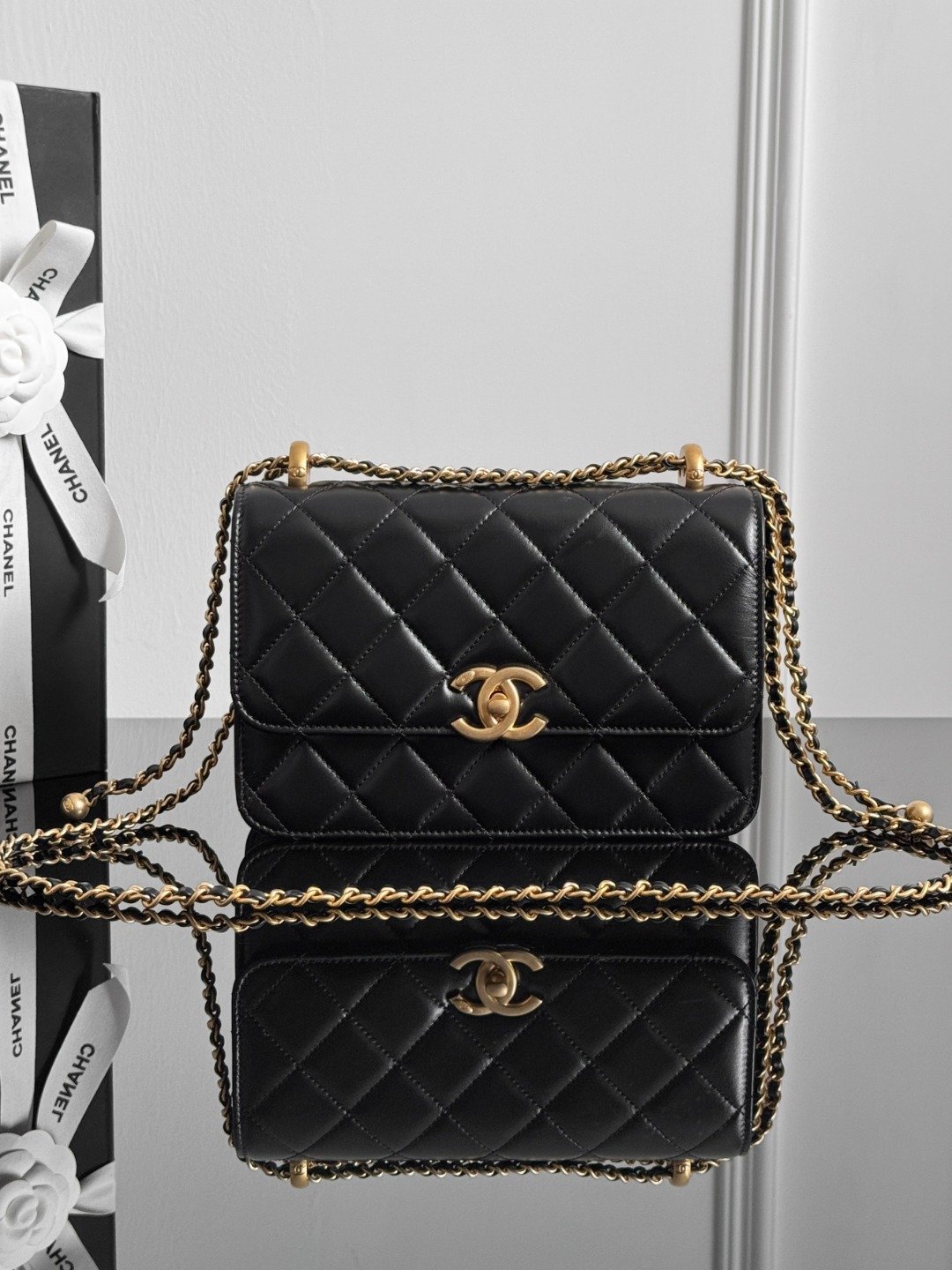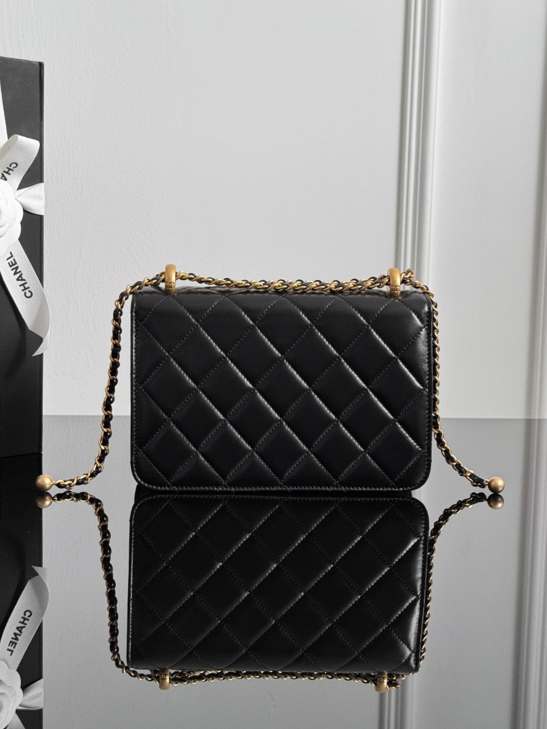 24C double gold ball 22 black gold The black double gold ball is classic and versatile. Not only that, it also incorporates Chanel’s unique design elements—the metal chain strap and iconic double C logo, making it like a flowing piece of art. The chain is adjustable, offering multiple ways to wear it.