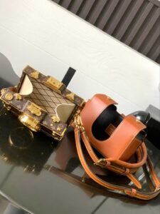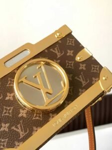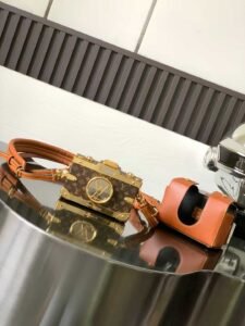 This Pic Trunk is an extraordinary masterpiece from the 2024 spring-summer fashion show, ingeniously designed as a miniature vintage camera. The compact hard case is crafted from Monogram canvas, overlaid with cognac-colored calfskin, and adorned with a golden LV Circle logo “lens cap.” This eye-catching accessory comes with a padded shoulder strap, allowing for neck-wearing, shoulder-carrying, or cross-body styling with a short strap.