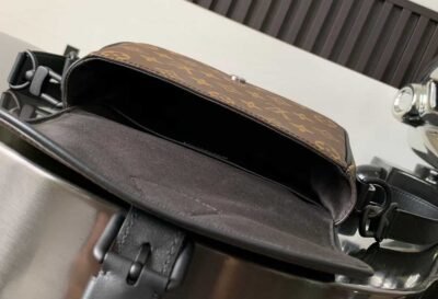 The small Montsouris messenger bag in Monogram Macassar coated canvas offers ample space, making it an ideal everyday companion. Its vintage silhouette paired with a leather strap also effortlessly transitions to formal occasions.