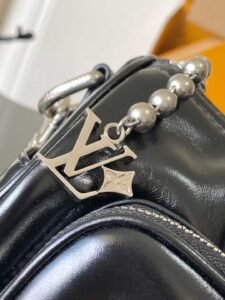 This Keepall Cargo Bandouliere 25 handbag is made of shiny cowhide leather, conveying Pharrell Williams’ Dandy aesthetics with an elegant and understated urban design. The Louis Vuitton Paris decal is cleverly fixed to the bag body with bead rivets, and the main compartment zipper head is decorated with LV letters