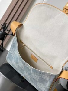 Using Damier Denim 3D cotton canvas to create a rounded silhouette, the unique checkered texture presents a soft texture. Montsouris buckle and shoulder strap highlight classic details.