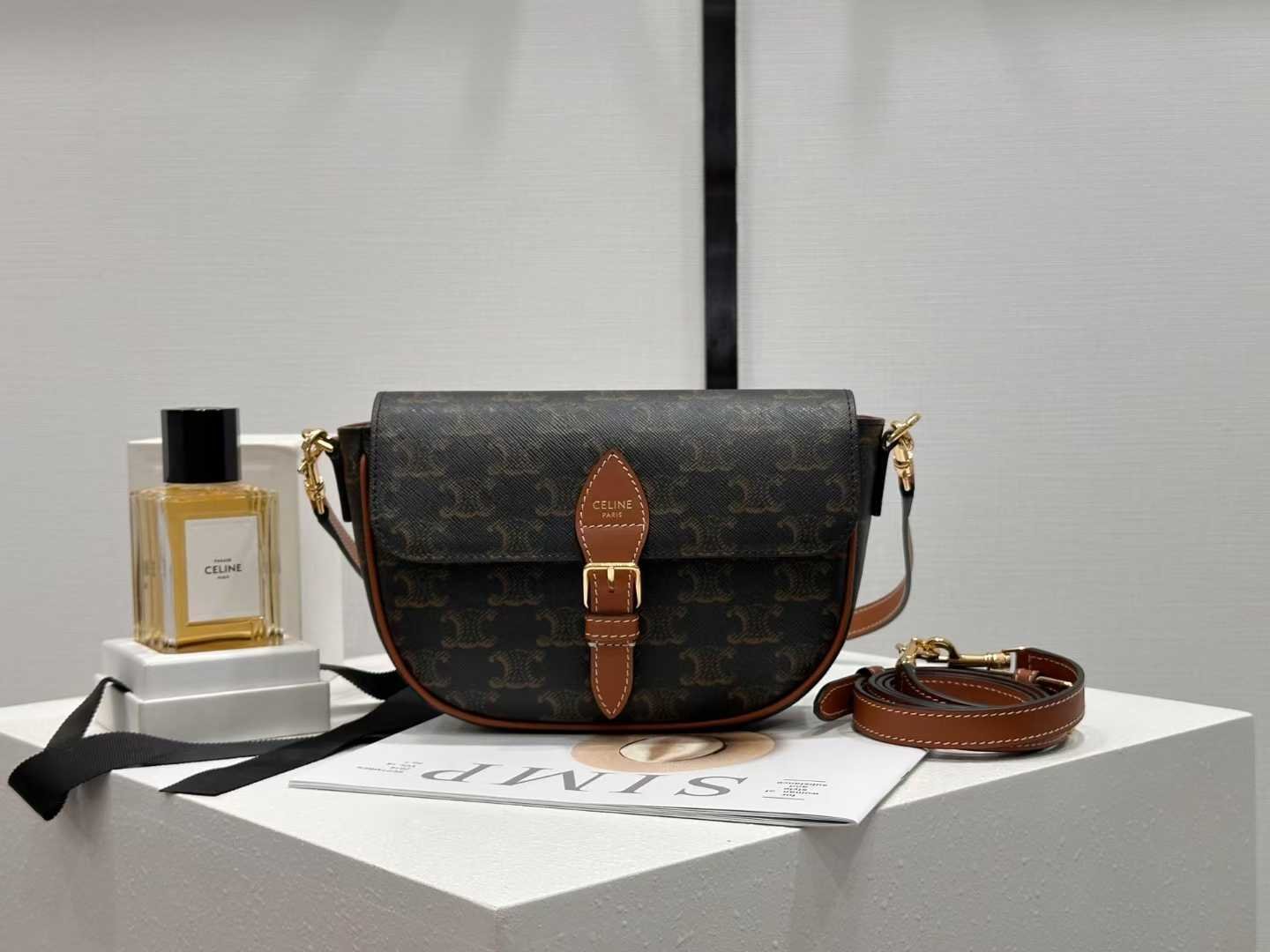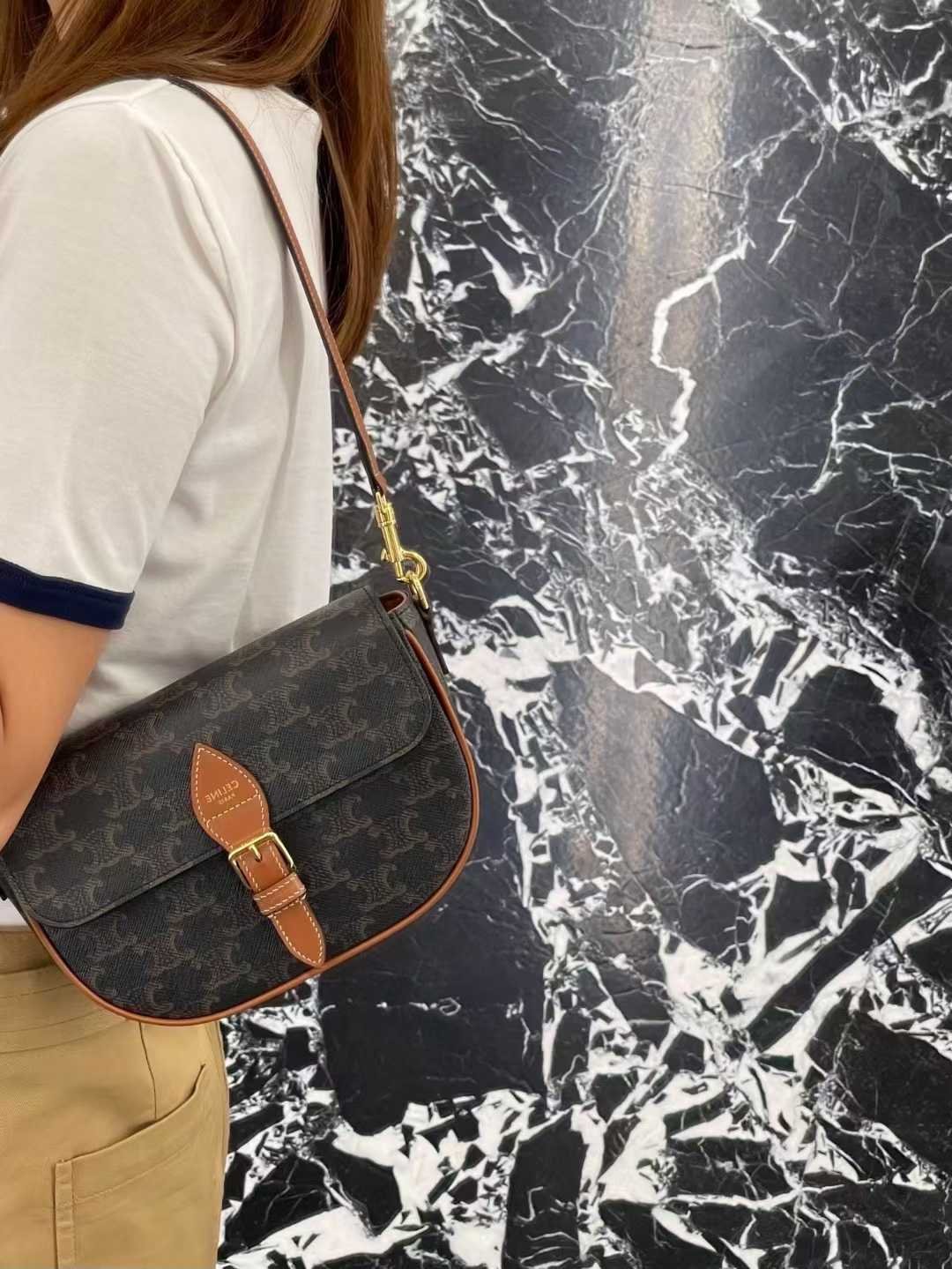 CELINE FOLCO double strap saddle bag 20*14*5cm