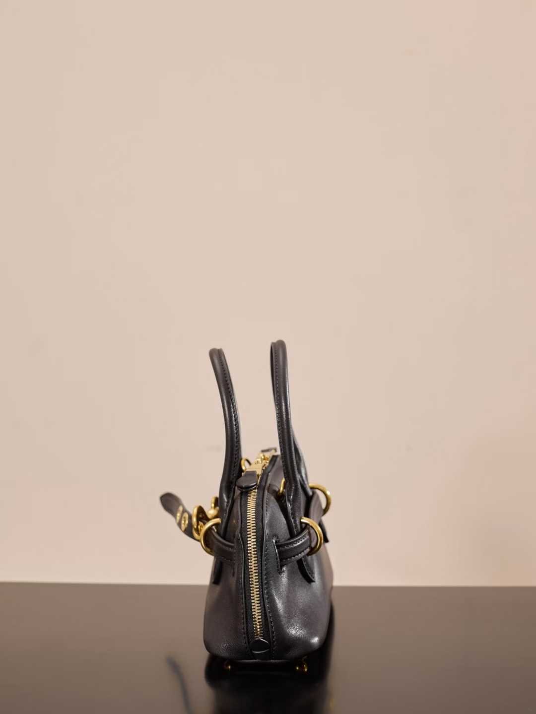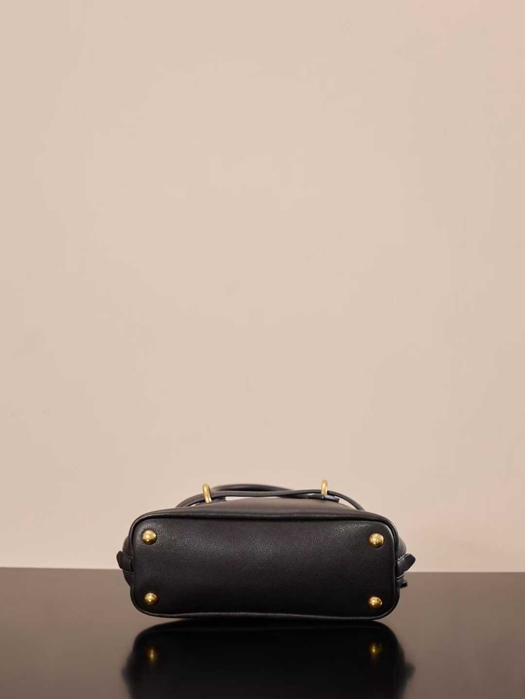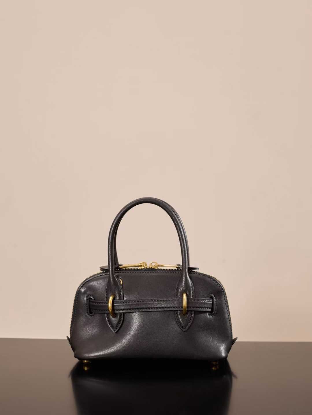 Aged lambskin ultra-soft and supple retro architectural silhouette + belt-style design, perfectly blending classic and individuality. Mini super exquisite. A must-have for those who love understated luxury and retro aesthetics. Comes with a handle/adjustable detachable long strap. Retro gold metal hardware. Lined with patch pockets. Equipped with protective metal feet.