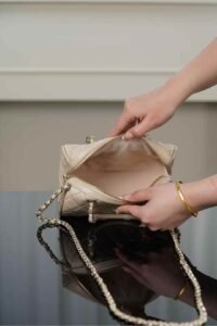 Chanel 25c early spring Boston bowling bag in beige 11×18.5×11.4cm