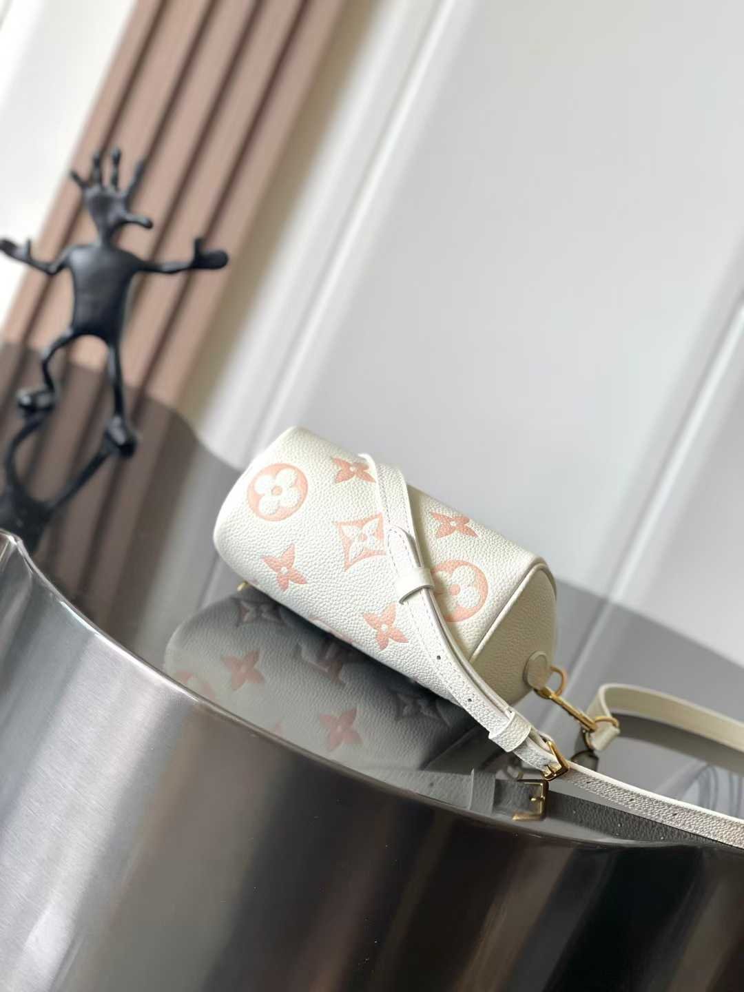 This Nano Speedy bag condenses the classic silhouette of the Speedy, depicting a watercolor-like sunrise hue through Monogram Empreinte leather and digital printing craftsmanship. The refined handle and detachable, adjustable shoulder strap offer versatile styling and carrying options.