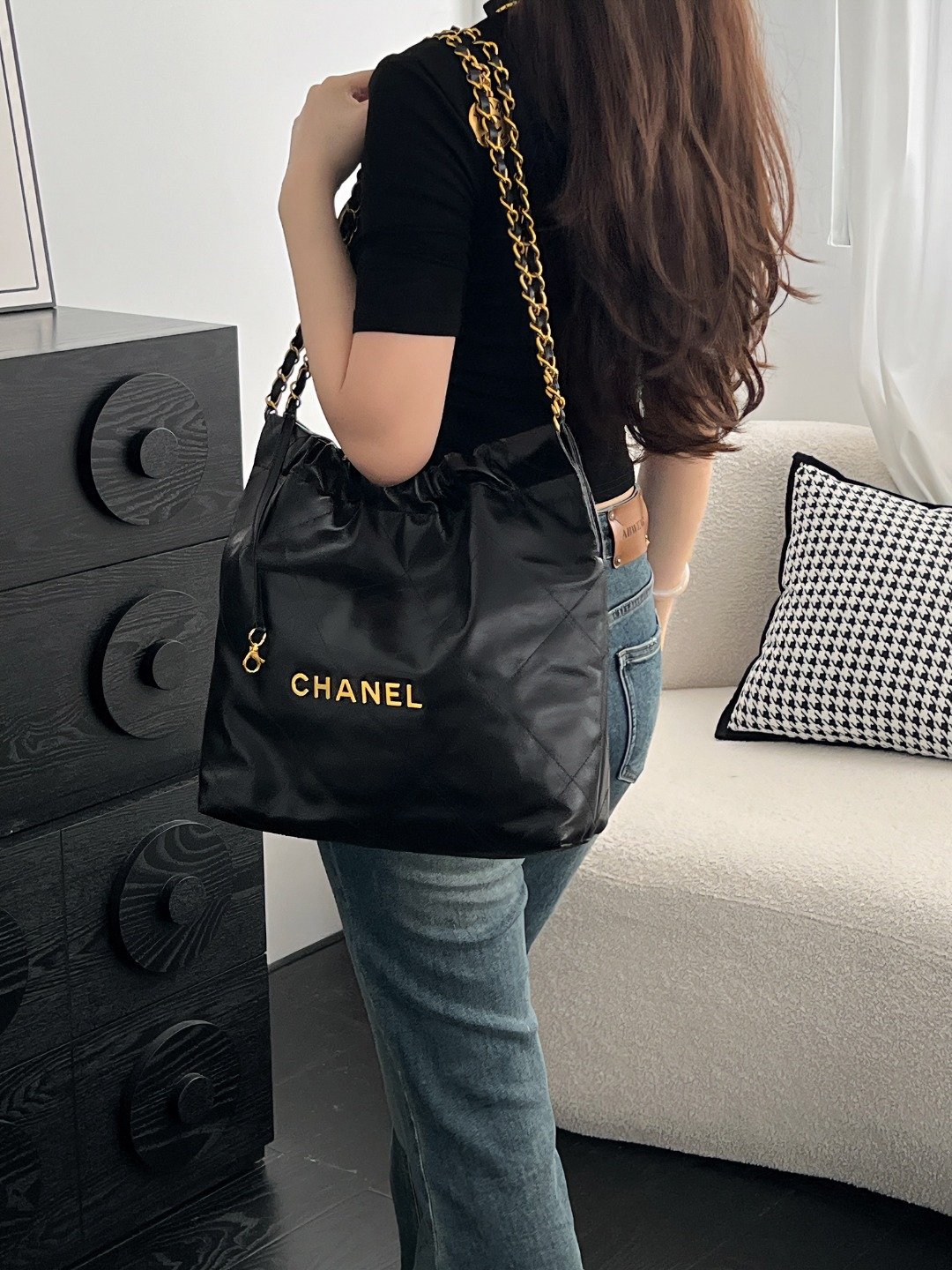Garbage bag – Little Black Gold A trash bag full of laid-back vibes, exuding lazy and casual style. Spacious capacity, dual chains + letter-print design – the ultimate commuter essential.