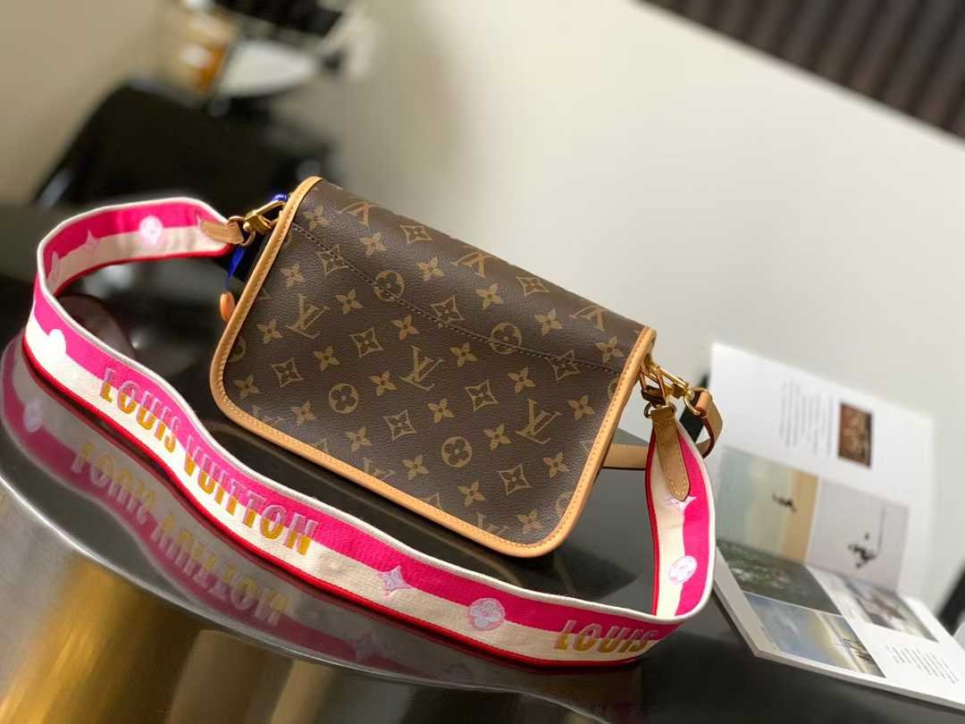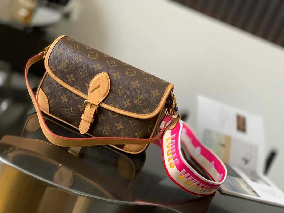 Vintage Bag Series DIANE Handbag This DIANE handbag comes with a leather shoulder strap (can be worn underarm) and an embroidered shoulder strap (can be worn crossbody), both detachable. The capacity is sufficient for daily use, easily accommodating the largest smartphones without any pressure. The belt-style buckle is decorative (actually magnetic closure), which is relatively convenient. It features a central compartment for organizing items and a zippered section for valuables.
