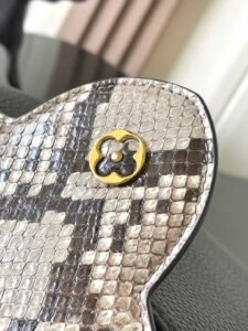 Capucines BB handbag made of imported French calfskin, featuring shiny metal hardware. The distinctive Capucines flap can be tucked inside to display the letter logo or flipped out to reveal the Monogram Flower pattern.