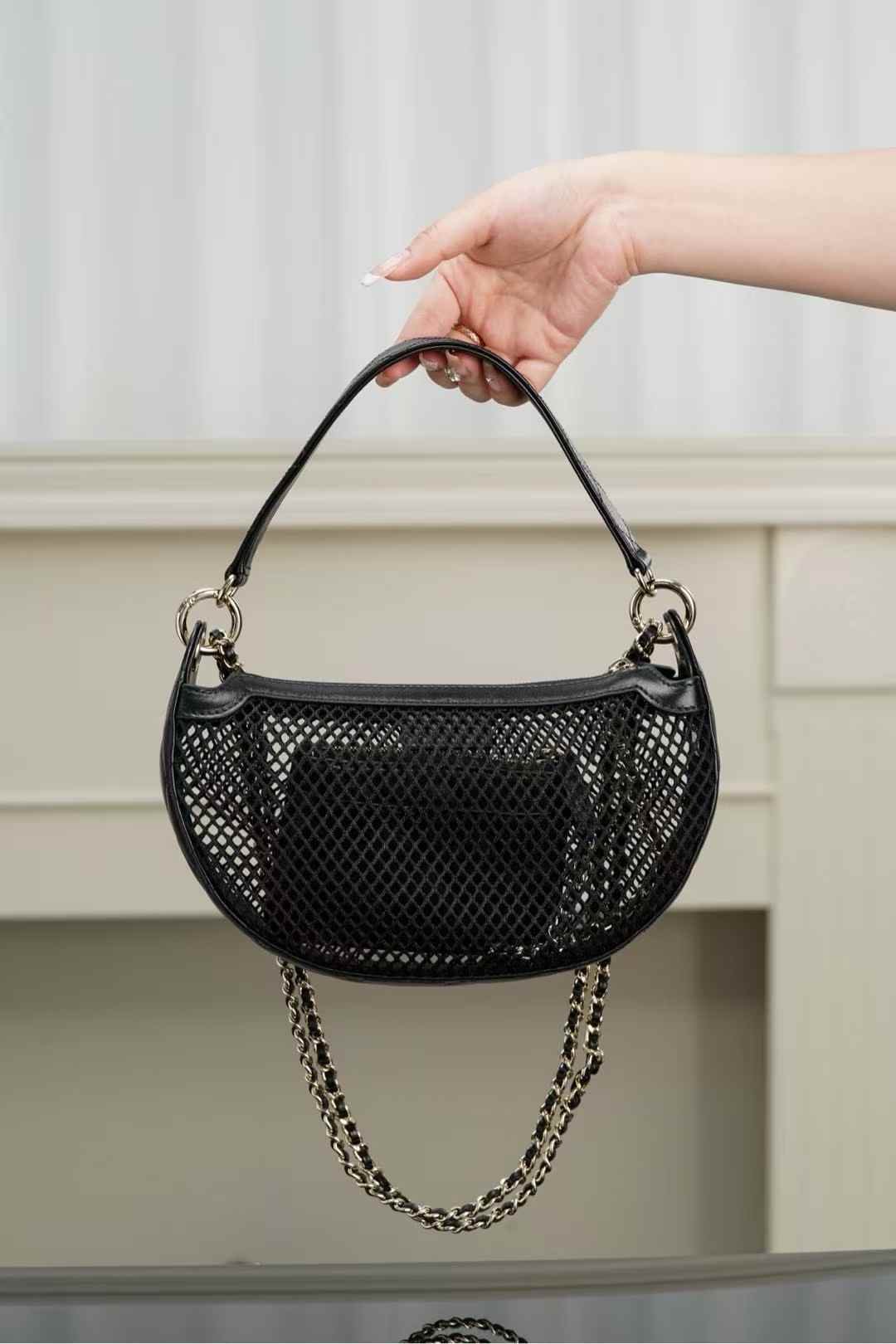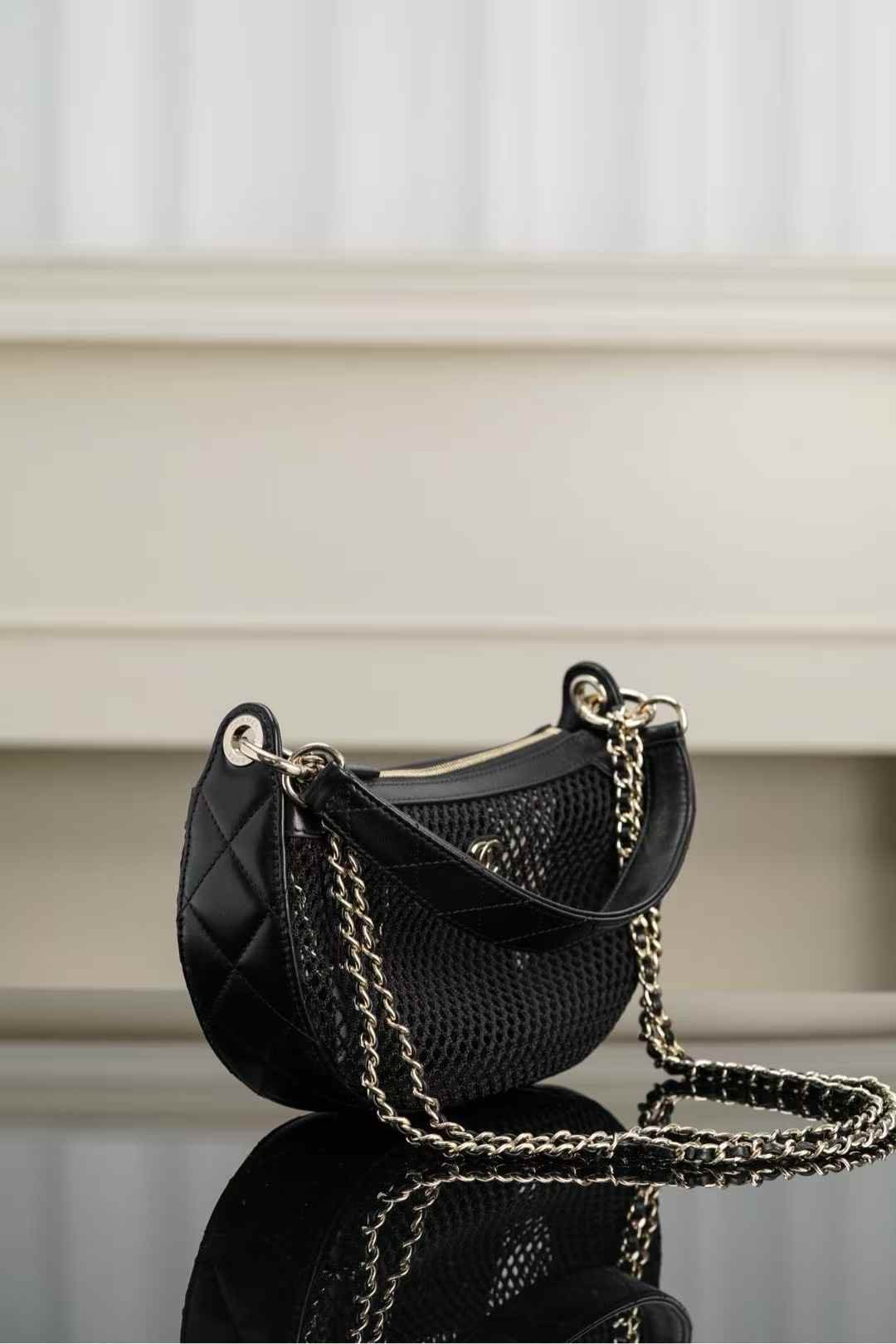 Chanel 25SS Hollow-Out Tulle Crescent Moon Bag Small Size 15*22*6cm