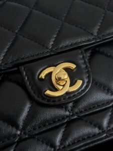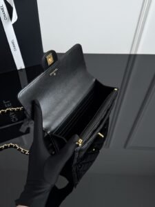 25B rivet woc black 25B mini crossbody messenger bag Classic gentleness meets the boldness of black and gold The embellishment of double C rivets is rebellious elegance When the softness of diamond quilting clashes with the toughness of rivets The black-and-gold color scheme suddenly gains a conflicting aesthetic~
