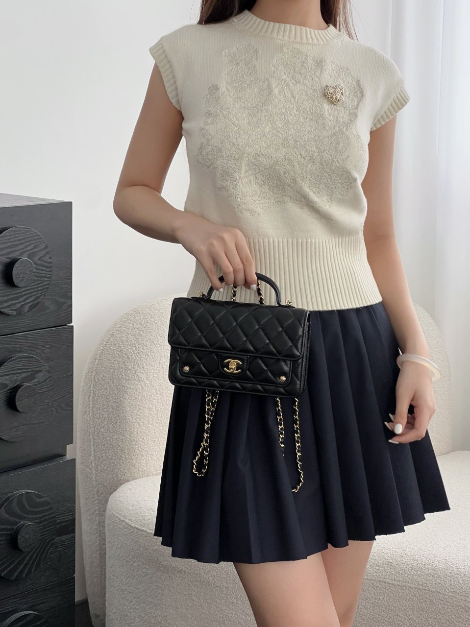 25B rivet woc black 25B mini crossbody messenger bag Classic gentleness meets the boldness of black and gold The embellishment of double C rivets is rebellious elegance When the softness of diamond quilting clashes with the toughness of rivets The black-and-gold color scheme suddenly gains a conflicting aesthetic~